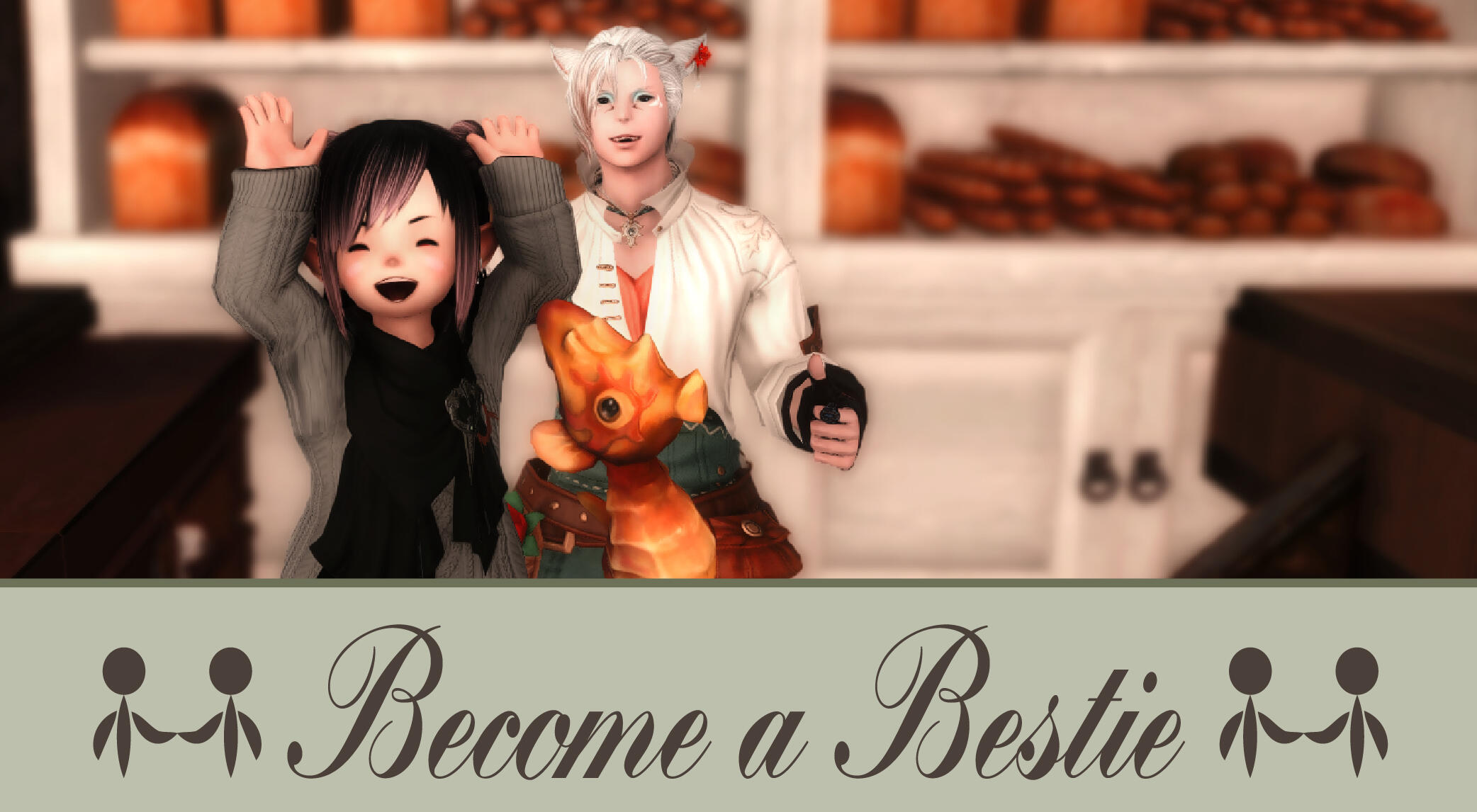 What comes next? Well that's easy, just have fun! With a smile on your face, open up a Bestie Bite or ten for yourself. Show off that trademark aetheric blue glow as the mystical seals inside are shattered, raise your hand up, and reveal your incredible prize! From gems to snacks to full on pets and mounts, you get to keep whatever you like from it. Or better yet, you can give your prizes out to get your guests even more excited!Now that you've got things going, get selling! Even though Bestie Bites practically sell themselves, you're the voice of the brand. Never drop that trademark smile, and make sure you remind people of how many amazing prizes they could win. Make absolutely sure your guests know that their best chance to get something amazing is to buy more Bites!Remember: Confident, competent, and congenial, that's Sotruu Beh'stee, and it should be you too! If you're worried about your sales skills, head on over to the products page and order yourself the Consult Kit. You'll get an in-depth guide to the Bestie Bites way, which even includes a forward by Sotruu Beh'stee herself! It's also your best resource for developing those-all important recruitment skills!