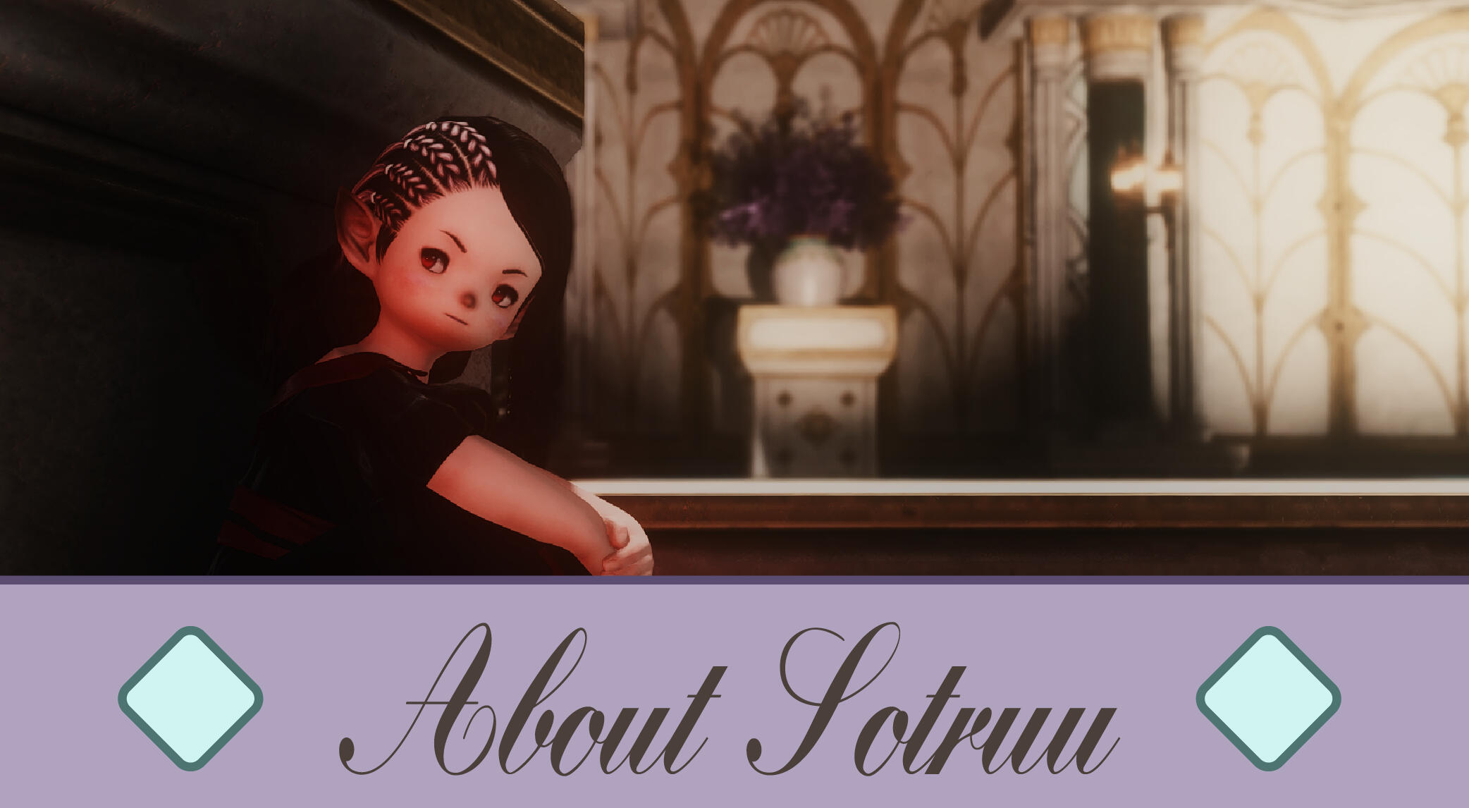 Bestie Bites: Sotruu's pride and joy is her prism-plan approach to marketing, shown first and foremost in Bestie Bites. If you're interested in being your own boss, making your own hours, and creating lifelong connection, just ask Sotruu and she'll get you started!Business Woman: Sotruu loves a compelling business venture, and is more than happy to talk shop at any time. She loves being in the know about up-and-comers, and won't hesitate to hear someone out if she sees an opportunity to strike gold.Underworld Casual: While she tries to keep things above board, at least in the public eye, Sotruu knows that sometimes you have to get a bit seedy to find the real gil. While she doesn't seek it out herself, she certainly won't turn her nose up at a business proposition outside the eyes of the law!Reluctant Botonist: As the child of a pair of hermit lumberjacks, Sotruu knows a fair amount about trees, shrubs, herbs, and living off the wild. It's not her favorite subject, but if you bring a bottle of wine when you ask she'll happily discuss it at length.